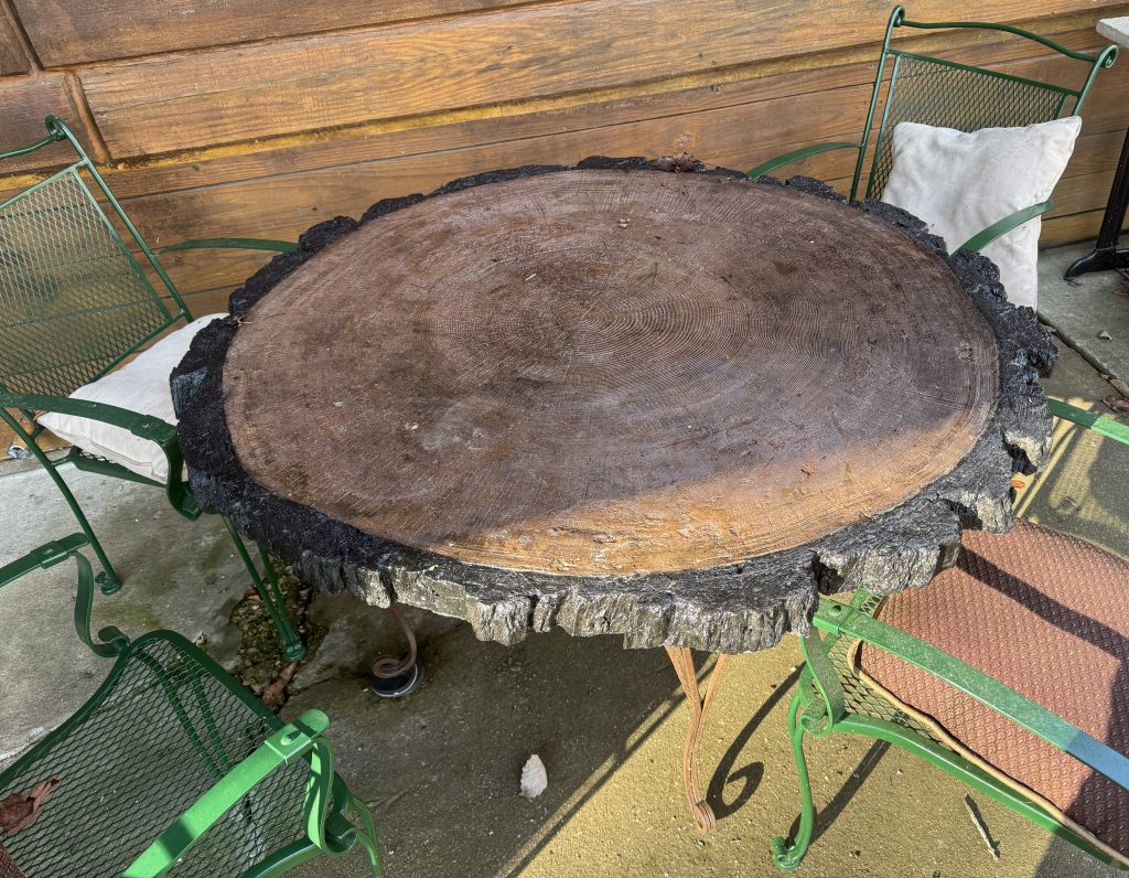 Top was done in tones of brown water base stain (UV stable) inside or outside.